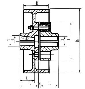 ●彈性套柱銷聯(lián)軸器是利用一端套有彈性套(橡膠材料)的柱銷,裝在兩半聯(lián)軸器凸緣孔中,以實(shí)現(xiàn)兩半聯(lián)軸器的聯(lián)接。彈性套柱銷聯(lián)軸器曾經(jīng)是我國應(yīng)用最廣泛的聯(lián)軸 器,早在 20 世紀(jì) 50 年代末期即已制訂為機(jī)械部標(biāo)準(zhǔn), JB08 — 60 彈性圈柱銷聯(lián)軸器,是我國第一個(gè)部標(biāo)準(zhǔn)聯(lián)軸器。