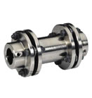膜片聯(lián)軸器是由幾組膜片(不銹鋼薄扳1Cr18Ni9)用螺栓交錯(cuò)地與兩半聯(lián)軸器聯(lián)接,每組膜片由數(shù)片疊集而成,膜片分為連桿式和不同形狀的整片式。